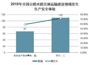 2019年全國(guó)公路水路交通運(yùn)輸建設(shè)領(lǐng)域全年共發(fā)生生產(chǎn)安全事故67起,比上年增長(zhǎng)59.5%,死亡110人,增長(zhǎng)71.9%,其中重大事故1起,死亡12人。未發(fā)生特大事故。