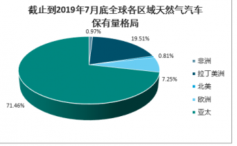 截止到2019年7月底全球各區(qū)域天然氣汽車保有量格局