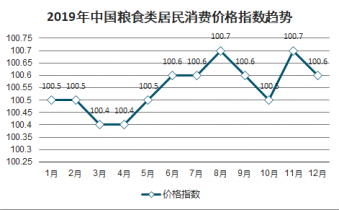 2019年中國(guó)糧食類居民消費(fèi)價(jià)格指數(shù)趨勢(shì)
