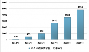 2014-2019年中國鋁合金模板行業(yè)需求量情況