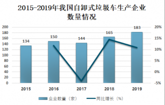 2015-2019年我國自卸式垃圾車生產(chǎn)企業(yè)數(shù)量情況