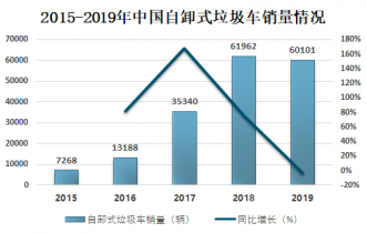 2015-2019年,中國自卸式垃圾車銷量呈現(xiàn)快速發(fā)展趨勢,其中2017-2018年中國自卸式垃圾車銷量高速增長,主要是由于垃圾分類政策的支持。2019年自卸式垃圾車銷量為60101輛,同比下降3.0%。未來,在我國垃圾分類以及國五切換國六的雙重利好政策的支持下,其行業(yè)依然存在較大的發(fā)展空間。