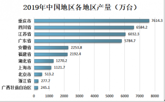 2019年中國地區(qū)各地區(qū)產(chǎn)量(萬臺)