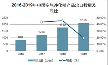 2016-2019年中國(guó)空氣凈化器產(chǎn)品出口數(shù)量及同比