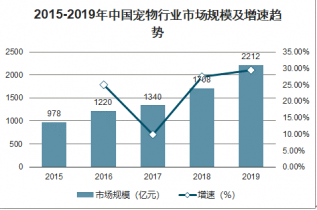 2015-2019年中國寵物行業(yè)市場規(guī)模及增速趨勢