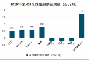 2019年Q1-Q3全球磷肥供應(yīng)增量(百萬(wàn)噸)