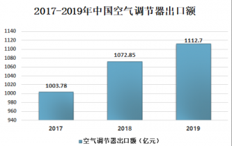 中國(guó)空氣調(diào)節(jié)器出口額逐年遞增,2017年中國(guó)空氣調(diào)節(jié)器出口額為1003.78億元,2019年中國(guó)空氣調(diào)節(jié)器出口額為1112.7億元,較2018年增長(zhǎng)39.85億元。