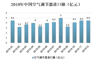 2019年中國(guó)空氣調(diào)節(jié)器進(jìn)口額(億元)