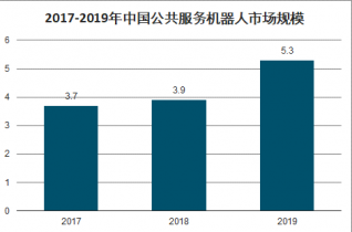 2017-2018年我國公共服務(wù)機器人市場規(guī)模分別達(dá)到3.7億美元和3.9億美元(數(shù)據(jù)根據(jù)實際情況按份額進(jìn)行折算),2019年中國電子學(xué)會測算公共服務(wù)機器人市場規(guī)模約為5.3億美元。