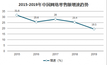 2015-2019年中國(guó)網(wǎng)絡(luò)零售額增速趨勢(shì)