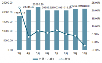 2019年9月全國水泥產(chǎn)量為21764.6萬噸,同比增長4.1%,2019年10月全國水泥產(chǎn)量為21848.8萬噸,同比下降2.1%。2019年1-10月全國水泥產(chǎn)量為190720萬噸,同比增長5.8%,2019年前10月全國水泥產(chǎn)量不斷增長。