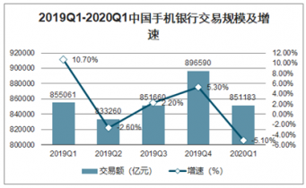 2019Q1-2020Q1中國手機銀行交易規(guī)模及增速
