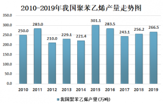 2010-2019年我國聚苯乙烯產(chǎn)量走勢圖