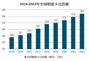 由于其拓展性、便捷性、安全性等優(yōu)勢(shì),智能卡市場(chǎng)需求潛力巨大,下游應(yīng)用空間廣闊。2018年全球智能卡出貨量達(dá)368億張,較2017年上漲2%。預(yù)計(jì)到2022年全球智能卡出貨量將達(dá)到384億張。