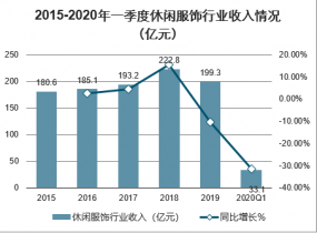 2015-2020年一季度休閑服飾行業(yè)收入情況(億元)