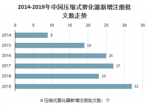 2014-2019年中國壓縮式霧化器新增注冊批文數(shù)走勢