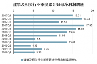 建筑及相關行業(yè)季度累計歸母凈利潤增速