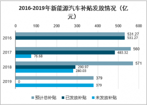 2016-2019年新能源汽車補貼發(fā)放情況(億元)
