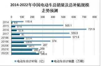 2014-2022年中國電動車總銷量及總補貼規(guī)模走勢預(yù)測