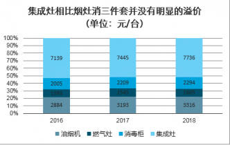 集成灶相比煙灶消三件套并沒有明顯的溢價(jià)(單位:元/臺)