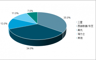 在存儲芯片市場中,呈現(xiàn)出典型的寡頭壟斷格局。在DRAM市場中,三星、海力士和美光三家占據(jù)96%的市場份額。NANDFlash市場中,三星、西部數(shù)據(jù)/東芝、美光、海力士四家占據(jù)了93%的市場份額。