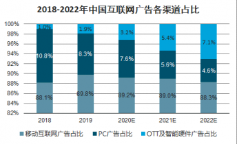 2018-2022年中國(guó)互聯(lián)網(wǎng)廣告各渠道占比