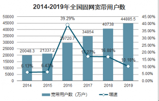 2014-2019年全國固網(wǎng)寬帶用戶數(shù)