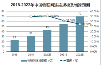 2018-2022年中國物聯(lián)網(wǎng)連接規(guī)模及增速預(yù)測