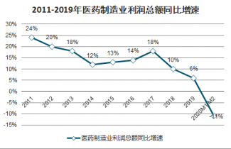 2011-2019年醫(yī)藥制造業(yè)利潤總額同比增速
