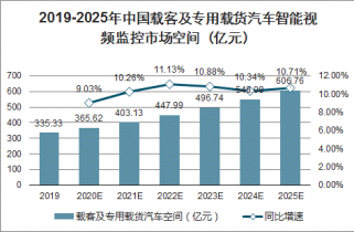 2022-2028年中國(guó)載客及專用載貨汽車智能視頻監(jiān)控市場(chǎng)空間(億元)