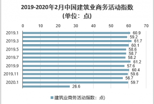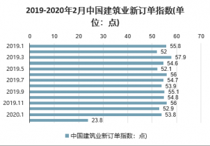 受疫情影響,2月行業(yè)景氣度顯著下滑,原因是大部分時間處于停工狀態(tài),2020年2月中國建筑業(yè)商務(wù)活動指數(shù)為26.6,環(huán)比回落33.1,同比回落32.9;從分項指標(biāo)看,新訂單指數(shù)23.8,環(huán)比下降30.0。
