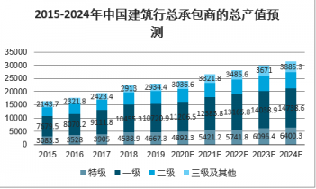 2015-2024年中國建筑行總承包商的總產(chǎn)值預(yù)測(億元)