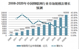 2008-2020年中國物聯(lián)網(wǎng)行業(yè)市場規(guī)模及增長預(yù)測