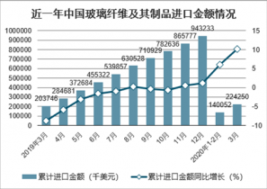2020年1-3月中國玻璃纖維及其制品進(jìn)口金額為224250千美元,同比增長10.1%。