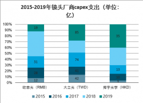 2015-2019年鏡頭廠商capex支出(單位:億)