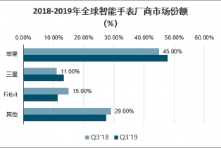 2018-2019年全球智能手表廠商市場(chǎng)份額(%)