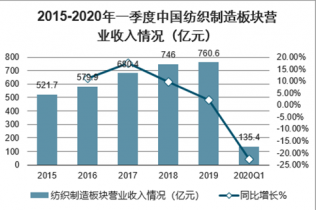 2015-2020年一季度中國紡織制造板塊營業(yè)收入情況(億元)