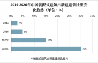 2014-2026年中國裝配式建筑占新建建筑比重變化趨勢(單位:%)