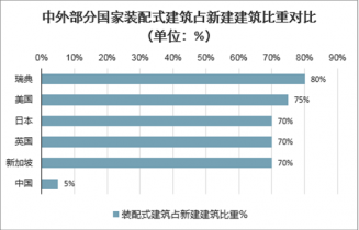 中外部分國家裝配式建筑占新建建筑比重對比(單位:%)