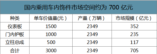 國內(nèi)乘用車內(nèi)飾件市場空間約為700億元