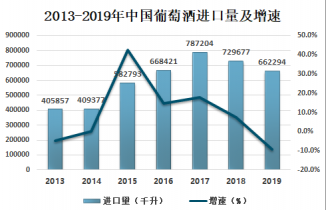 2013-2019年中國葡萄酒進(jìn)口量及增速