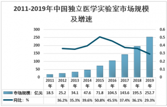2011-2019年中國獨(dú)立醫(yī)學(xué)實驗室市場規(guī)模及增速