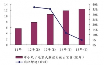 2011-2015年中小尺寸電容式觸控面板出貨量預(yù)測(cè)