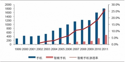 本文導讀:全球智能手機出貨量占整體手機的比重在2007 年已經超過10%,2011 年已經達到26.2%。這一方面反映出智能手機已經被市場逐漸接受,成功渡過萌芽期而進入發(fā)展期,另一方面也反映出其未來還有很大的發(fā)展空間。