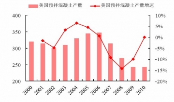 2000-2010年美國預(yù)拌混凝土產(chǎn)量變化情況:百萬方