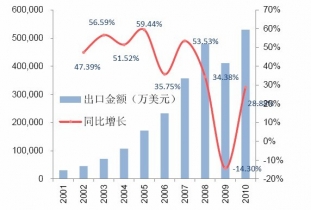 2001-2010年我國出口金額的變化
