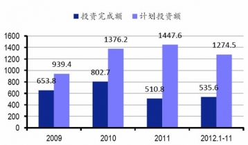 2009-2012年輪胎行業(yè)固定資產(chǎn)投資變化單位:億元