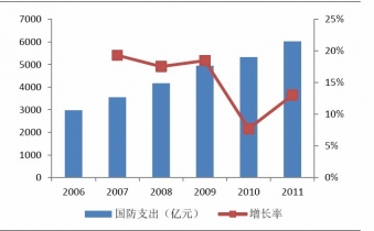 2006-2011年國防支出及增速