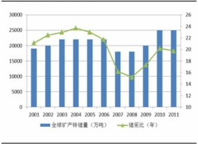同時(shí)鋅再生性低于其他基本金屬,長(zhǎng)期看資源稀缺性更強(qiáng)。鋅的可再生性較差,目前我國(guó)可再生鋅占鋅消費(fèi)的比例為13%,北美為20%左右,遠(yuǎn)低于其他工業(yè)金屬。主要原因是原料可獲得性差,鋅50%用于鍍鋅領(lǐng)域,鍍鋅鋼材重熔體系尚不完善,大部分鍍鋅鋼混雜在其他廢鋼中重熔,得到的煙塵含鋅量較低,不具備回收價(jià)值;另外,環(huán)保對(duì)再生鋅的制約也很大。根據(jù)2011年USGS數(shù)據(jù),全球靜態(tài)鋅儲(chǔ)量2.5億噸,按照2011年鋅礦產(chǎn)量899萬噸計(jì)算,全球鋅礦可采年限僅為20年。