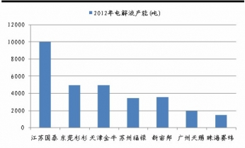 2012年我國電解液主要企業(yè)產(chǎn)能
